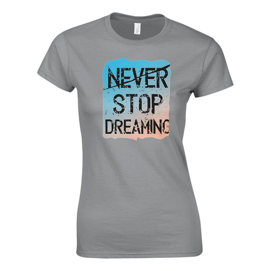 NEVER STOP DREAMING Klassisches T-Shirt mit Rundhalsausschnitt für Damen