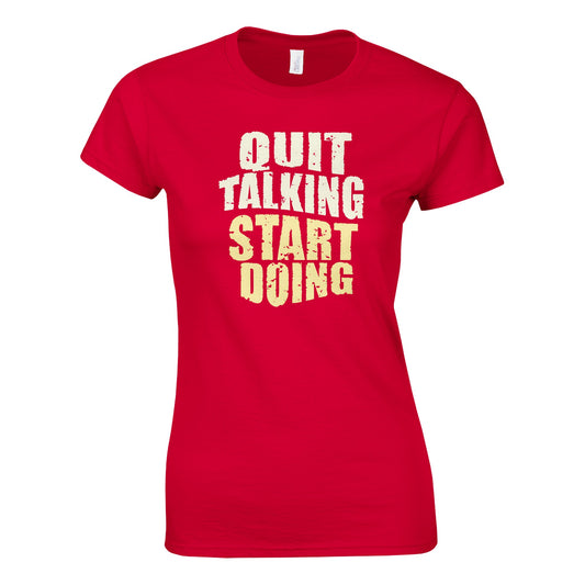 QUIT TALKING START DOING Klassisches T-Shirt mit Rundhalsausschnitt für Damen