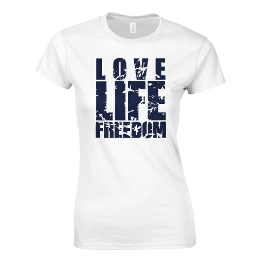 LOVE LIFE FREEDOM Klassisches T-Shirt mit Rundhalsausschnitt für Damen